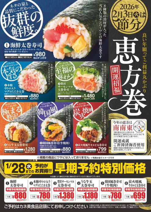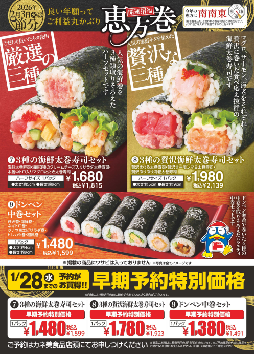 「Re’z deli」では、今年も豪華な恵方巻や人気の恵方巻など全9種類をご用意いたしました。