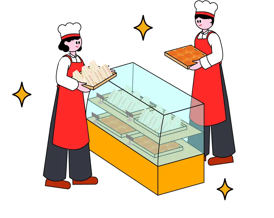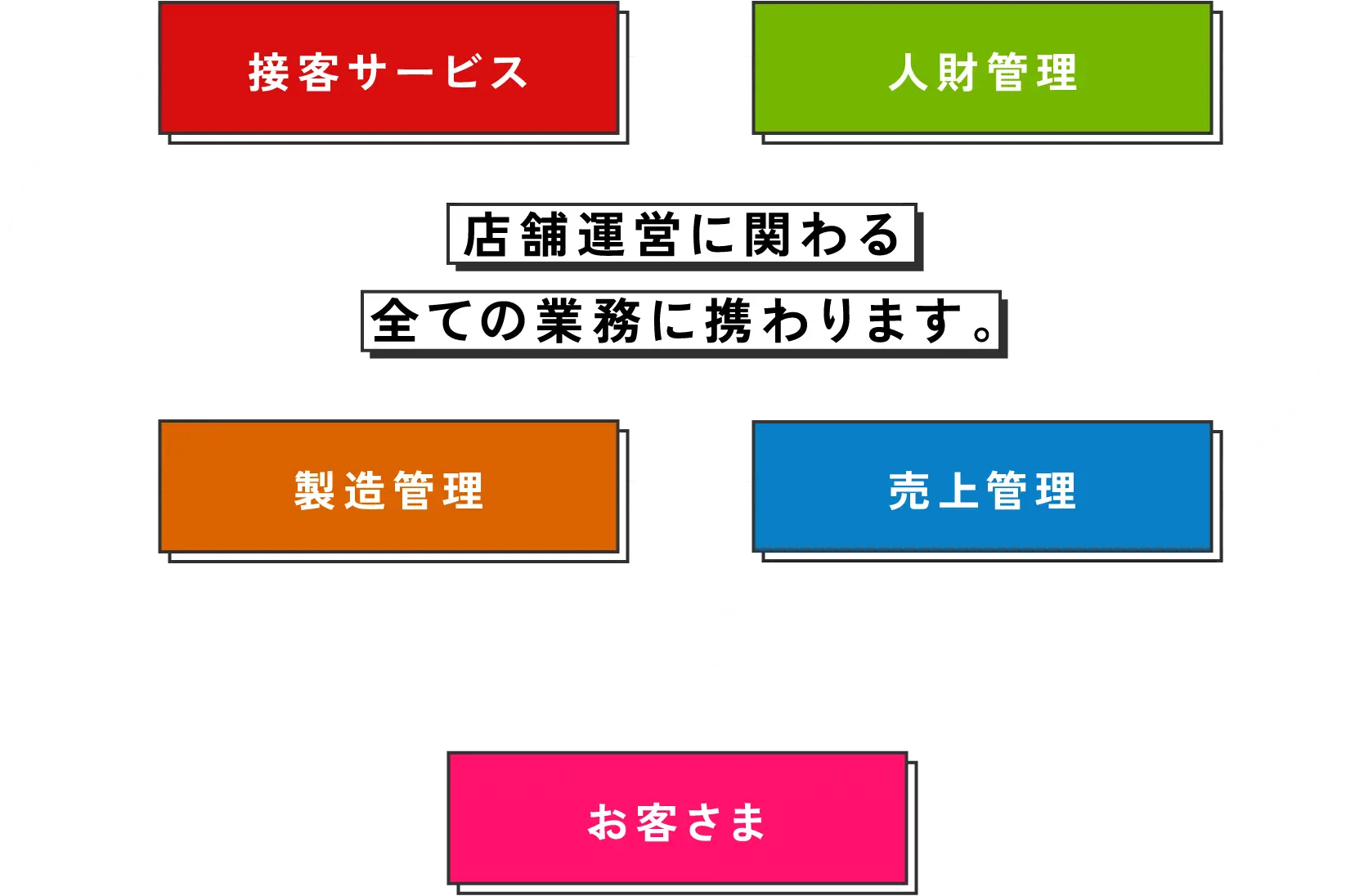 豊富な商品アイテムの中からお客さまの需要やイベントに合わせた販売計画を立て、常に出来立てをお客さまにご提供できるよう、時間管理しながら商品製造を行います。