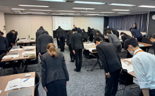 テナント店舗ではお客様と接する機会が多く、挨拶やお辞儀、言葉使い等は重要な研修の一つです。お辞儀の角度、表情で伝える想い、しぐさなど一つ一つに込められている意味合いを学んでいきました。