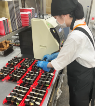 一日の流れとして、午前中に巻き寿司やフライパックの製造を行い、午後は揚げ立ての商品を作り、翌日の仕込みをしています。その他にも売上、前年予算比、値引率等の計算を実績表に記入します。