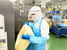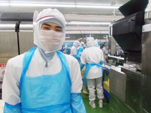 今は実習生と一緒に商品の具材準備や機械にご飯を入れる仕事をしています。