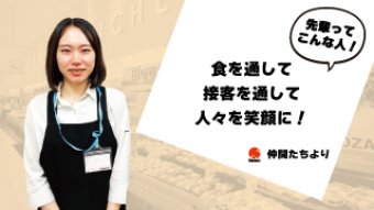 学生の頃から食べる事が大好きでした。またアルバイト経験など食に関する事に携わる機会が多く私にとって食はとても身近な存在でした。学生時代のアルバイト経験では食を通してお客様に感謝される事がとてもやりがいに繋がっていました。 就職後も大好きな食と人に関わる事ができる職につけたらと思い就職活動を進めた結果、ご縁があり入社を決めました。人事の方々が優しく対応してくださった事も入社の決め手になりました。
