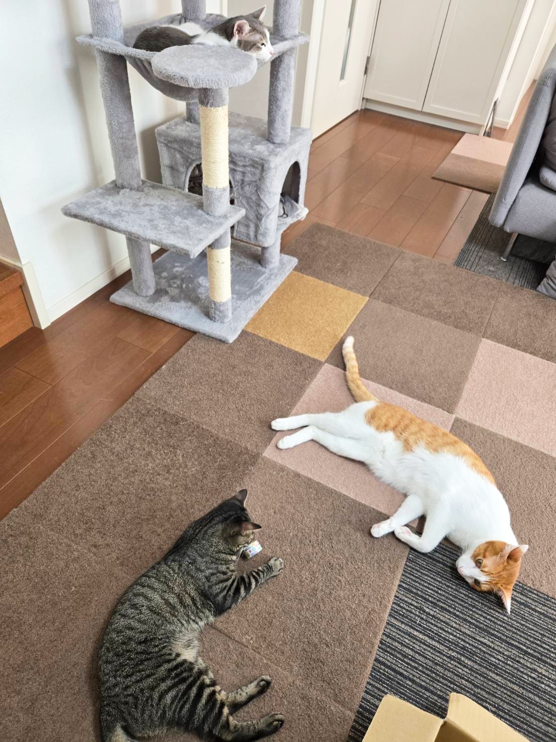 のびのびする猫ちゃんたちに癒されながら一緒にリラックスして過ごしています。