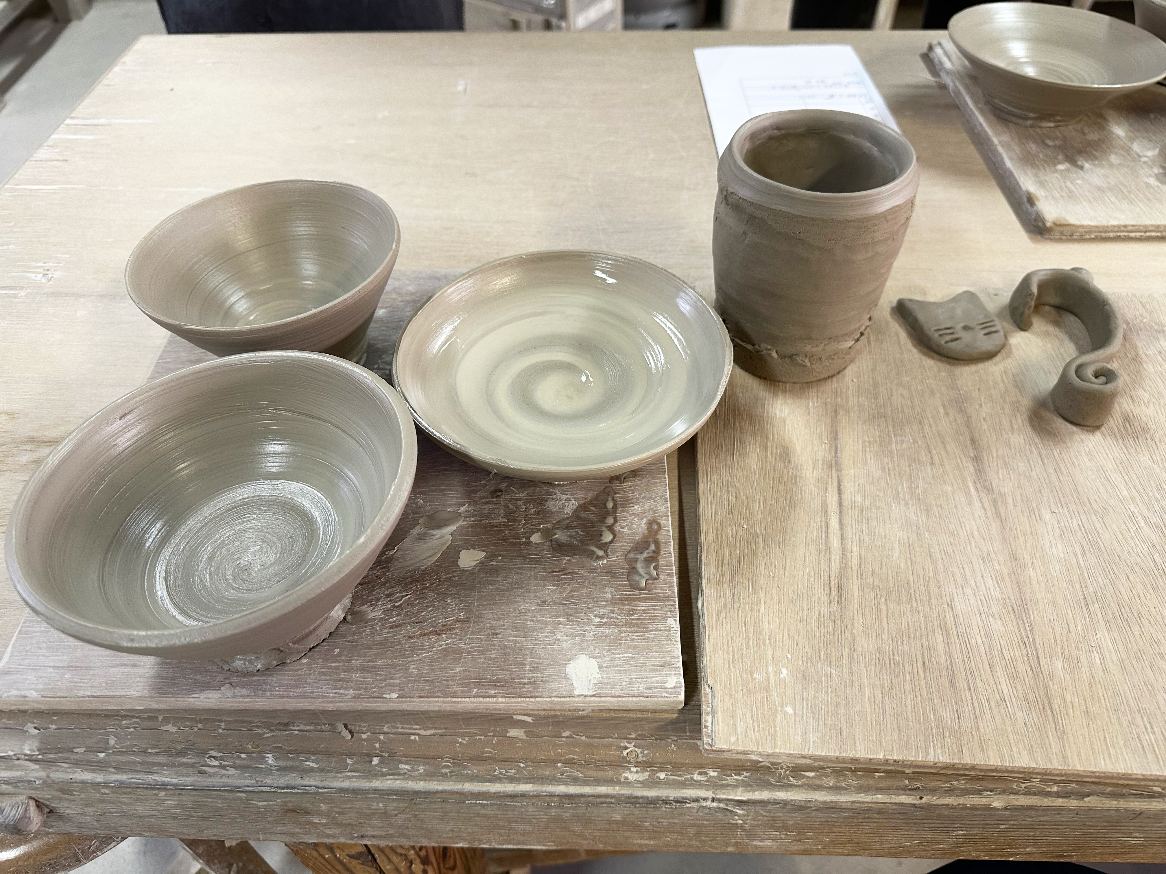 初めてろくろを使い、器や湯のみ、皿を作りました!